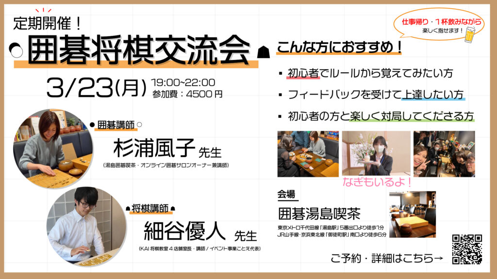 【2026年3月23日(月)】囲碁将棋交流会【ことえ/湯島囲碁喫茶】
