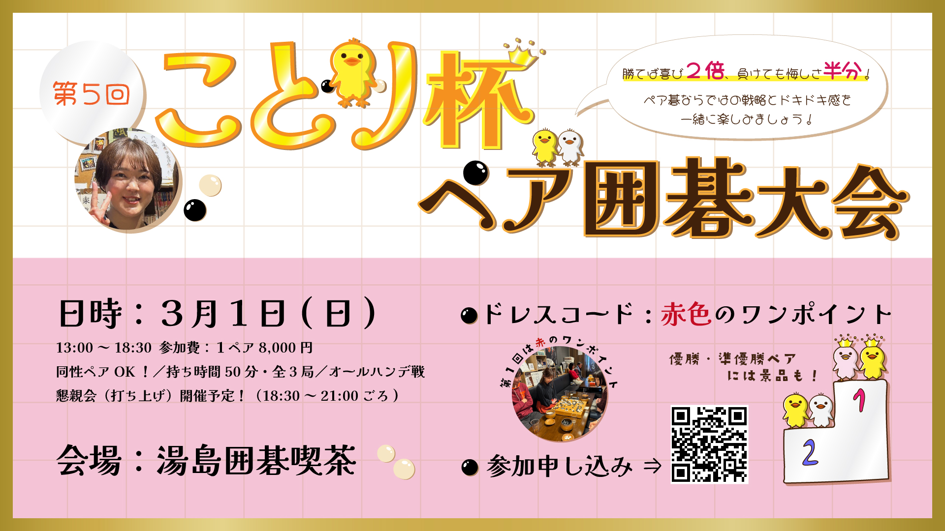 松本ことり(7段)初めてペア碁に挑戦する方にも参加しやすい大会ですので、お気軽にお待ちしてます。